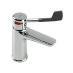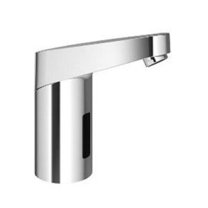 Rubinetto elettronico per lavabo in ottone cromato. Dotato di sensore infrarosso, risciacquo igienico regolabile 2, 12, 48 ore. Alimentato a batteria – 6V litio – con durata fino a 4 anni. Adatto per allacciamento ad acqua fredda o premiscelata.