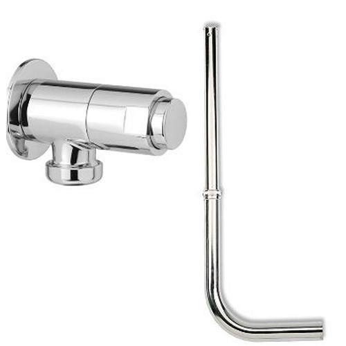 Flussometro a pulsante temporizzato per installazione esterna, completo di tubo di raccordo con attacco 3/4″. Tutte le parti sono in ottone con finitura cromo. Adatto per allacciamento ad acqua fredda o premiscelata.