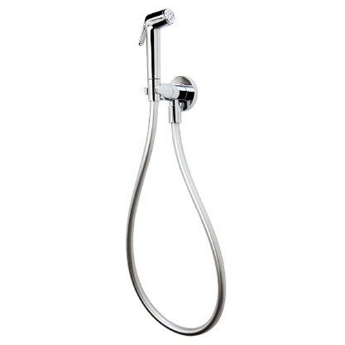 Idroscopino – WC jet – per installazione esterna in ottone cromato. Dotato di doccetta a pulsante con getto a pioggia non regolabile, tubo flessibile e valvola di sicurezza.