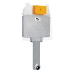 Cassetta di scarico a zaino in ABS, munita di pulsante pneumatico per il comando dello scarico sul corpo. L’articolo include il comando di scarico pnematico a libera posizione.