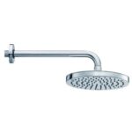 H70597H00021009 Soffione COSMO 230×230 mm in ottone autopulente con snodo 1/2″ F, con braccio doccia orizzontale 350 mm a 90° diametro 21 mm, attacchi 1/2″MM con rosone.