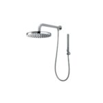 H89410C00030009 Braccio doccia girevole in ottone 1/2″ MM con sistema di deviazione integrato, soffione diametro 250mm autopulente con snodo 1/2″ F OKI, Doccia ZEN monogetto in ottone, supporto fisso e flessibile in doppia aggraffatura 1/2″x 1/2″FF cono liscio con gomma da 150cm.