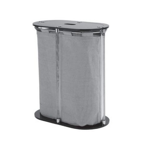 K174CSABC L’immagine ha solo scopo illustrativo, per misure/colori esatti fare riferimento alla descrizione e/o alla scheda tecnica. Cesto portabiancheria ovale, senza ruote, con aste in plexiglass trasparente, finiture cromate, sacco e plexiglass colorato.
