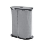 K174CSNVR L’immagine ha solo scopo illustrativo, per misure/colori esatti fare riferimento alla descrizione e/o alla scheda tecnica. Cesto portabiancheria ovale, senza ruote, con aste in plexiglass trasparente, finiture cromate, sacco e plexiglass colorato.