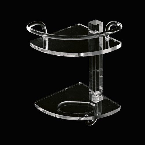 L003-TR L’immagine ha solo scopo illustrativo, per misure/colori esatti fare riferimento alla descrizione e/o alla scheda tecnica. Angolare doccia 2 piani in plexiglass trasparente con gancio.