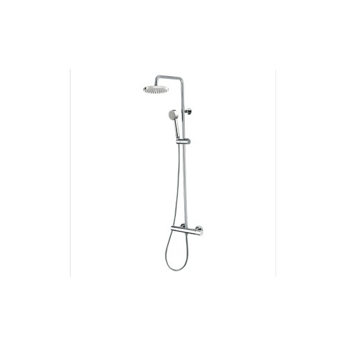 L10052000030008 Set doccia completo di colonna murale ottone sezione Ø 20 mm – soffione ELIOS in ABS Ø 250 mm – doccetta CYLINDRICA/1 – supporto doccia orientabile – CROMOLUX 150 cm attacco ½” FF con cono – miscelatore monocomando esterno con deviatore integrato.