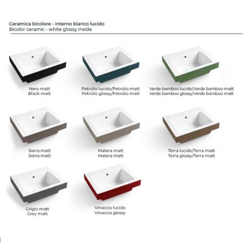 LAB6052M Lavabo in ceramica senza foro per rubinetteria 60×50 Volant MATERA MATT COLAVENE
