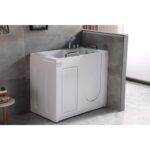 La vasca, completa di miscelatore meccanico, con deviatore, doccetta e flessibile, ha l’accesso posto a destra guardando frontalmente l’articolo. Viene fornita del pannello perimetrale per il lato destro.