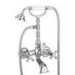 Miscelatore vasca/doccia con deviatore con supporto a muro snodato normale con doccia e flessibile completo di: