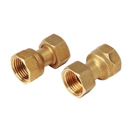 P15FY005 Coppia di bocchettoni filettati femmina, completi di calotta e guarnizione di tenuta, in ottone non cromato, per il collegamento di valvole di zona a sei vie R274N, R274C.