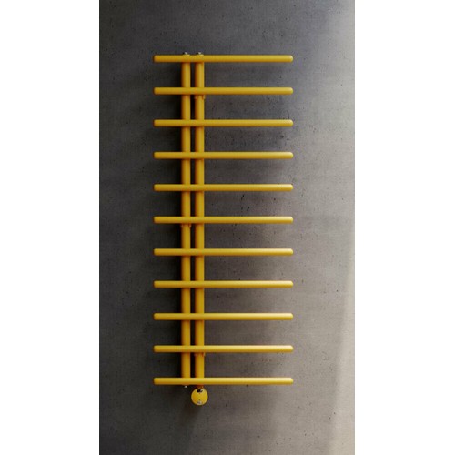 Scaldasalviette in acciaio, realizzato con tubi verticali diametro 35 mm e tubi tondi orizzontali diametro 25 mm.