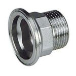 Raccordo diritto in tre pezzi, con attacchi filettati femmina-maschio a bocchettone. In ottone.
