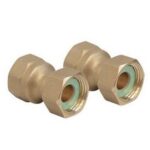 Raccordo diritto in tre pezzi, con attacchi filettati femmina-maschio a bocchettone. In ottone.
