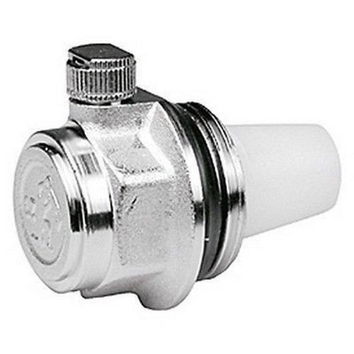 Valvola automatica sfogo aria, in ottone, cromata. Per radiatori. Con autotenuta e tappo di sicurezza.
