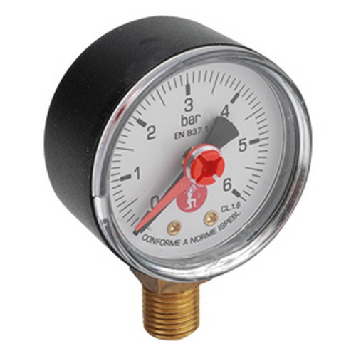 R225IY009 Manometro per la misurazione della pressione dell’impianto, con lancetta rossa di riferimento.