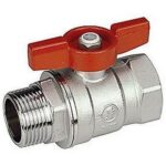 Valvola con sfera, in ottone cromato, con attacchi femmina-maschio.