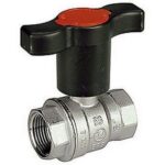 Valvola con sfera, in ottone, con attacchi femmina-maschio a bocchettone.