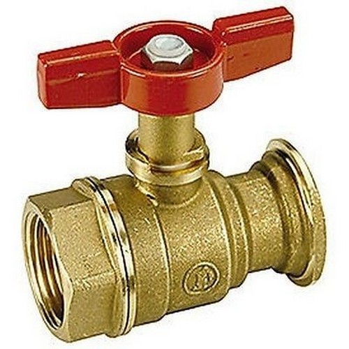 Valvola a sfera, in ottone non cromato, con attacchi femmina-sede piana per collegamento circolatori.
