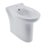 Modulo sanitario per bidet, realizzato in fibra di cellulosa e gesso supportato da una struttura leggera in metallo.