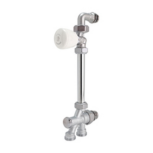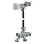 R438IX043 Gruppo termostatizzabile con attacchi dal pavimento, valvola diritta e detentore, in ottone, cromato, con attacco per adattatore tubo rame, plastica o multistrato.