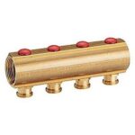 Collettore di distribuzione in ottone, con attacchi filettati femmina.