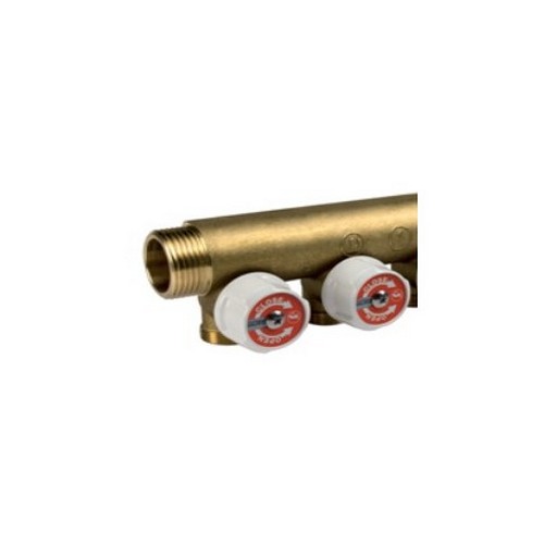Collettore componibile semplice per impianti sanitari, con rubinetti di intercettazione, in ottone.