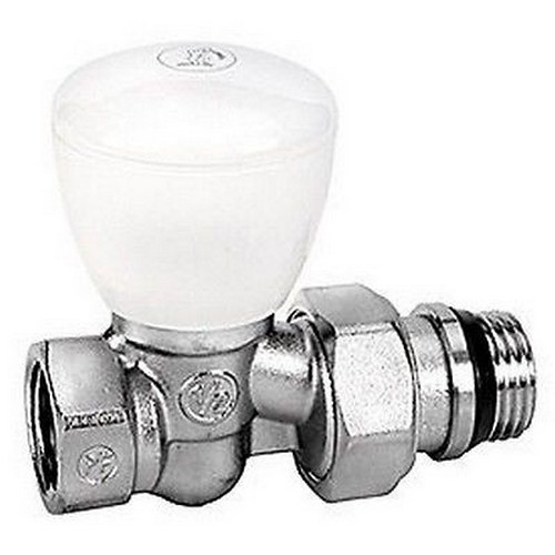 Valvola manuale a regolazione semplice, diritta, in ottone, cromata, con attacco per tubo ferro.