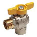 R780GBX004 Valvola a sfera a squadra, in ottone nichelato, con attacchi maschio-femmina.