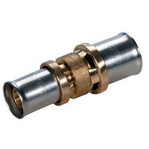 Raccordo diritto ridotto, a pressare multipinza. In ottone. Per tubi in plastica o multistrato.