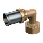 Raccordo curvo 90°, a pressare multipinza. In ottone.