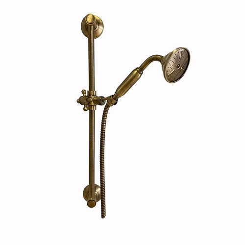 SL9A4M1D8CG Saliscendi in ottone stile antico Ø 18 mm lunghezza totale 62 cm completo di doccia MATILDE LUSSO manopola ottone, disco ottone, flessibile 150 cm D/A