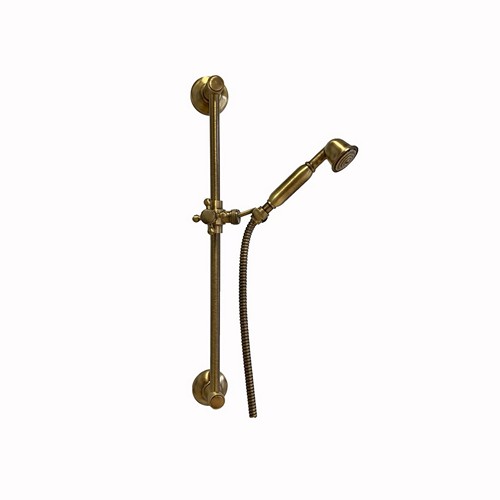 SL9A4V1A8CG Saliscendi in ottone stile antico Ø 18 mm lunghezza totale 62 cm completo di doccia VIOLETTA manapola ottone, disco ottone ,flessibile 150 cm D/A