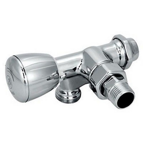 Valvola micrometrica termostatizzabile per termoarredo, a squadra, in ottone, cromata lucida, con attacco per adattatore tubo rame, plastica o multistrato. Per impianti bitubo. Senza sonda. Dotata di detentore di regolazione.