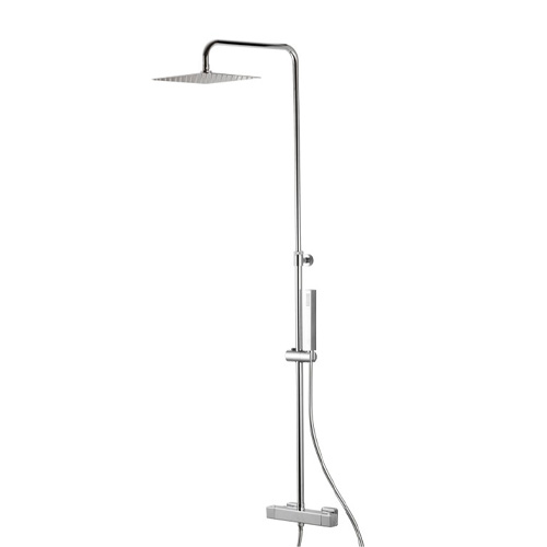 Colonna doccia esterna da parete con soffione quadro, miscelatore termostatico incorporato e set doccetta.