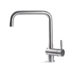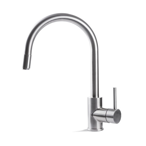 Miscelatore monocomando per lavello con canna tonda girevole acciaio e doccetta estraibile.